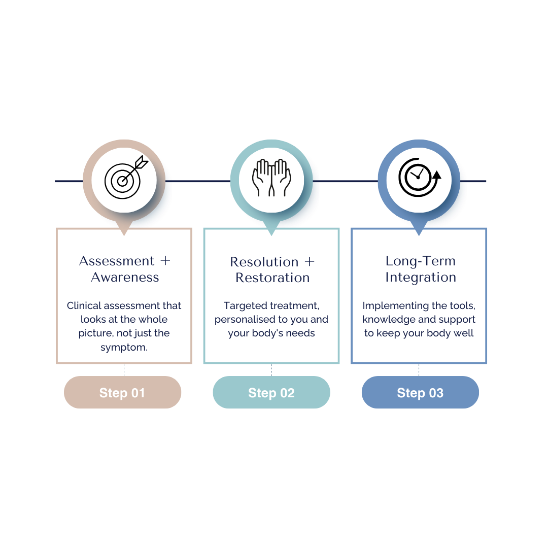 Once the contributing and maintaining factors are understood (the factors that load your system and keep strain recurring) we put a plan in place to address them.
